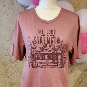 Mauve top with black writing psalm 118:14