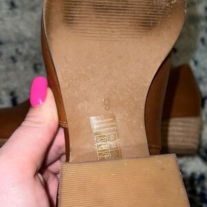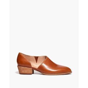 A cross between booties and shoes, with a low stacked wooden heel and flattering asymmetrical cutout.