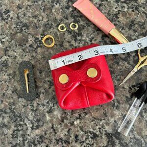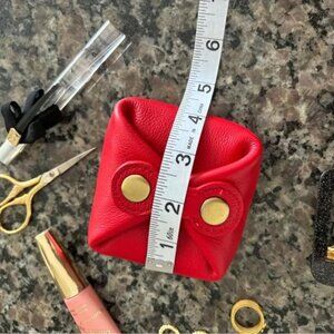 The Lucy Mini red leather pouch travel case gold hardware snap button closure