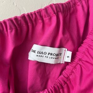 The Lulo Project Liberia Fuchsia Pink One Shoulder A-Line Midi Dress. Lightweight stretch poplin. Smocked elastic waist. One-shoulder neckline. Pullover design, no closure. Cotton blend. Made to lounge. Size Small.