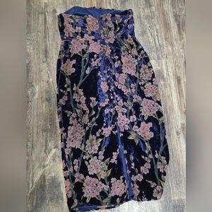 The Lulu's Buy You Flowers Navy Floral Print Velvet Strapless Midi Formal Dress