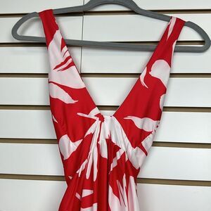 The MIA Maxi Dress tie back halter Neck Tropical print Red/white Sz Small