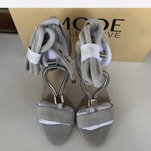 NIB The MODE Collective Mink Sandal in Oyster Grey. Suede Leather. A wearable work of ART! GORGEOUS!
