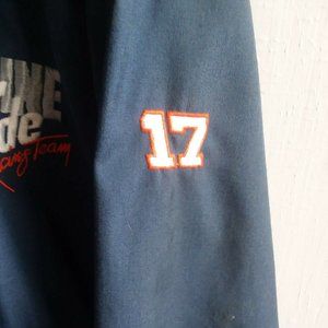 Tide Racing Team Jacket #17. At least 30 years old. My brother was the original owner. Blue, zip front, snaps at neck and shoulders, 2 front pockets. Has been worn but good condition for its age.