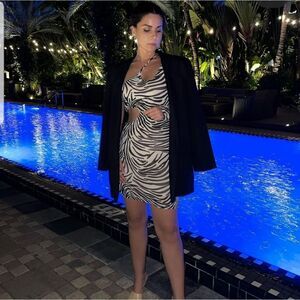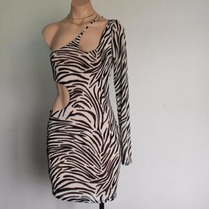 🆕️The Maddie// Ivory Zebra Asymmetrical Mesh Dress w/ cut out detail