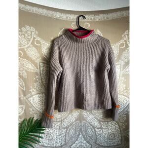 The Maeve Mock-Neck Color-Tipped Sweater in Taupe