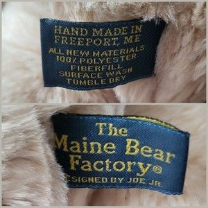 The Maine Bear Factory Tan Teddy Bear 16" Plush Stuffed Toy Green Top Handmade