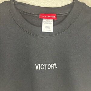 Classic black crewneck with 'Victory' embroidery. Comfortable and stylish. Ideal for casual wear.