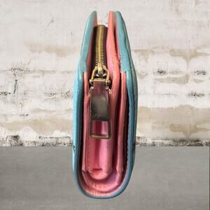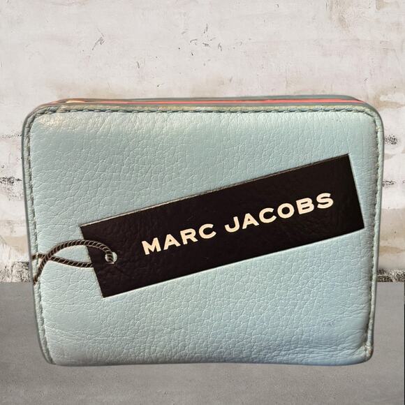 The Marc Jacobs Vegan Leather Graphic Print Compact Wallet Baby Blue & Pink
