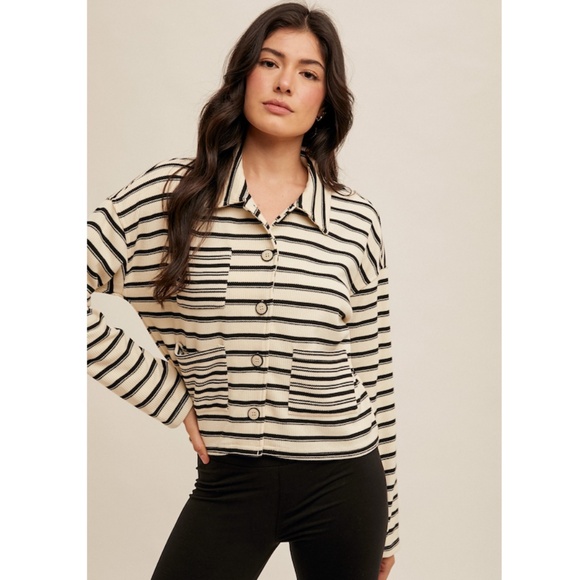 "The Maria" Ribbed Striped Mixed Button Down Shacket