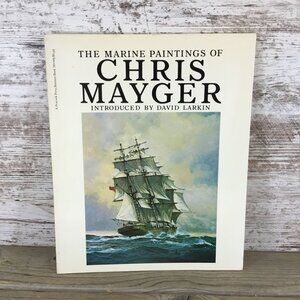 This hardcover book showcases vivid marine artwork by Chris Mayger, featuring ships, battles, and oceanic scenes, introduced by David Larkin.