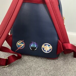 Mini backpack featuring Marvel superheroes. Vibrant design with red and blue colors.