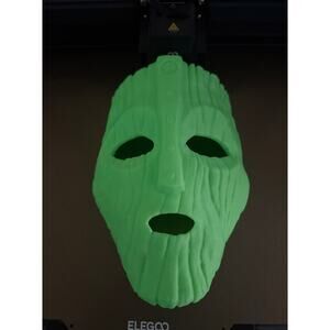 This is a replica mask from the hit Jim Carrey movie The Mask that is made out of PLA plastic and glows in the dark! it is 9 inches tall and 6.75 inches wide and is lightweight at only 6oz. It is .5-.7 inches thick at its thinnest and thickest points. It has slots on each side of the mask for a band or strap to hold it on.