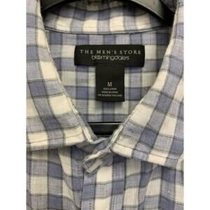 The Mens Store Bloomingdales Linen Button Up Shirt Mens Sz M Plaid Classic Blue
