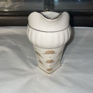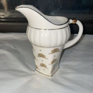 This creamer boasts a beautifully scalloped top and an elegantly shaped spout.