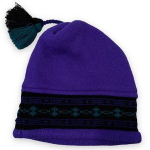 The Mews Beanie Purple Black Knit Wool Apres Ski Pom Outdoors Hiking