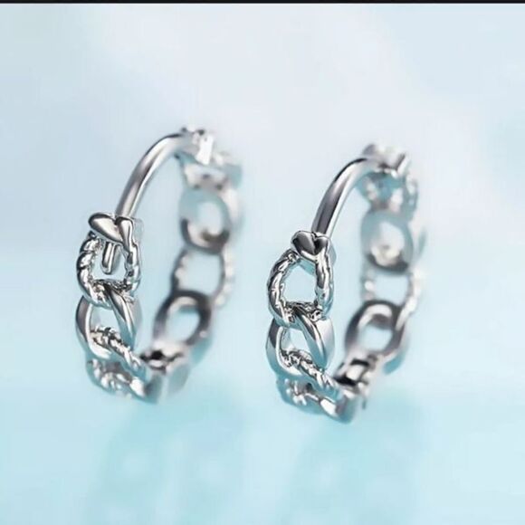 The Mini Chain Hoop dainty 925 silver huggie, hoop earrings.