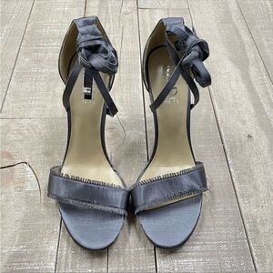 The Mode Collective Arielle Heeled Satin Open Toe Sandal in Charcoal