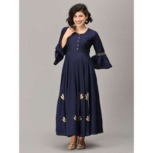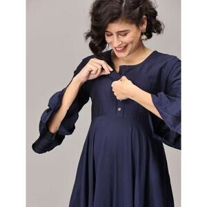 The Mom Store Maternity Navy Blue Ethnic Motifs Dress XL Made In India