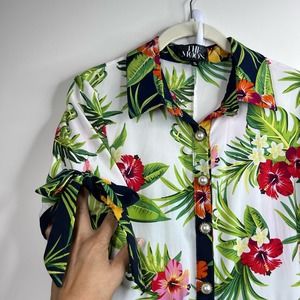 The Moon Retro 70's Boho Tropical Vacation Hawaiian Pearl Button Up Maxi Dress Small