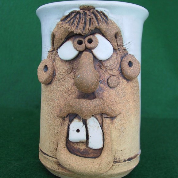 This piece of pottery is from the studio of Robert Karlinsey and is individually handcrafted, lead free and dishwasher safe. Heighth: 5 3/8 inches, Diameter: 3 3/4 inches.