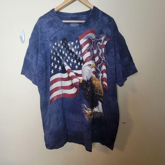 American eagle and USA flag on a Tie dye Blue Short Sleeve tshirt