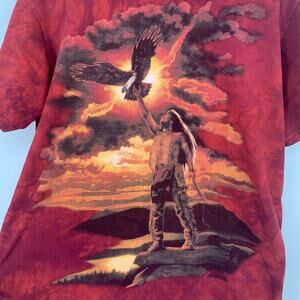 The Mountain Gift of the Eagle Feather Red Tie Dye Graphic T-Shirt Size Medium