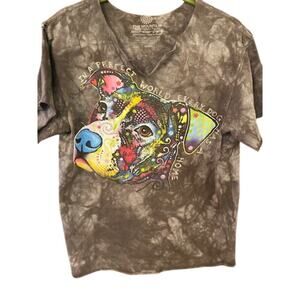 The Mountain Happy Dog Distressed Women's T-Shirt Medium Dark gray tie dye