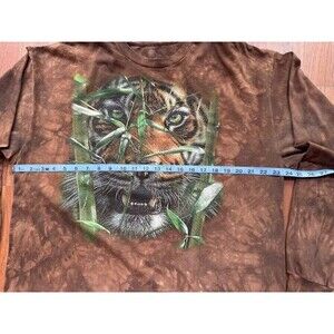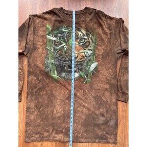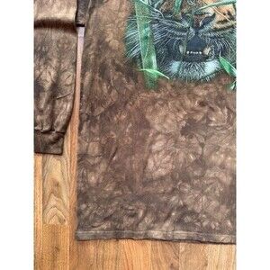 The Mountain Hungry Eyes Long Sleeve T Shirt Mens 2XL Brown Tiger Tie Dye EUC