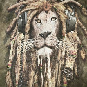 The Mountain Lion Rasta T-Shirt Headphones Tie-Dye Green Bob Marley Size Medium