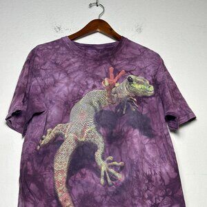 The Mountain Lizard Purple Tie-Dye Graphic T Shirt Men L Y2K Reptile Abstract