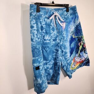 The Mountain Mens Board Shorts Swim Trunks Size 36 Alien Surf Blue Beach Pocket