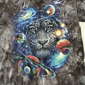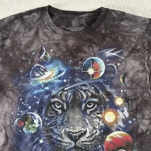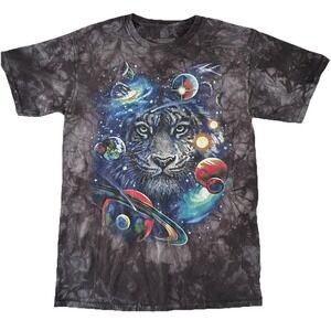The Mountain Men's Medium White Tiger Cosmos Unisex T-Shirt features a striking white tiger design against a cosmic background. This unisex t-shirt is designed to fit men comfortably in a size medium. The shirt is perfect for those who appreciate unique and eye-catching graphic tees, combining elements of nature and the cosmos into one visually appealing design. Made by The Mountain, known for their high-quality and durable t-shirts, this piece is sure to make a statement in any casual outfit.