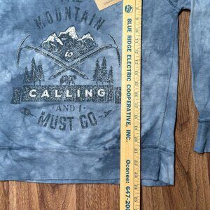 The Mountain NWT I Must Go Tie Dye Sweatshirt Ladies M Cotton Bld Blue Gorp Core