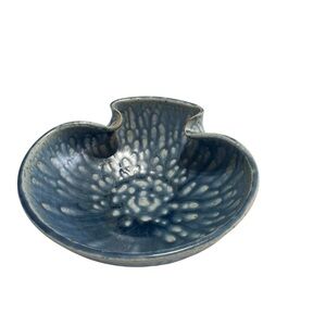 Beautiful blue pottery pour bowl/ice cream bowl purchased at an estate sale. Excellent condition with no chips or cracks. Lovely patterns of blues, grays and browns. See photos as they are part of the description.