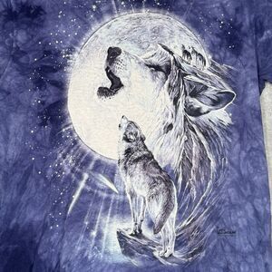 The Mountain Shirt Mens Medium Blue Tie Dye Wolf Wolves Moon Novelty Casual