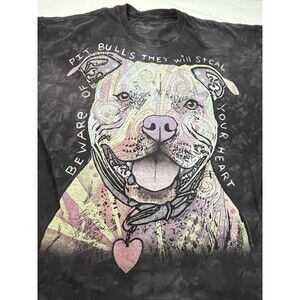 The Mountain T Shirt Adult XL Gray Tie Dye Pit Bull Dog Graphic Dean Russo