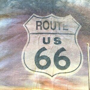 In excellent condition - this classic tie-dyed shirt from The mountain, features an old diner on the famous Route 66. Made in the USA, of 100% cotton, this shirt will provide comfort with style with a scene from years ago.