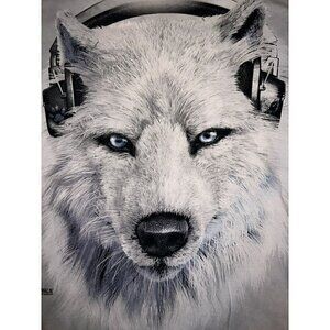 The Mountain White Wolf T-Shirt Manimals By The Mountain Wolf Wearing Headphones