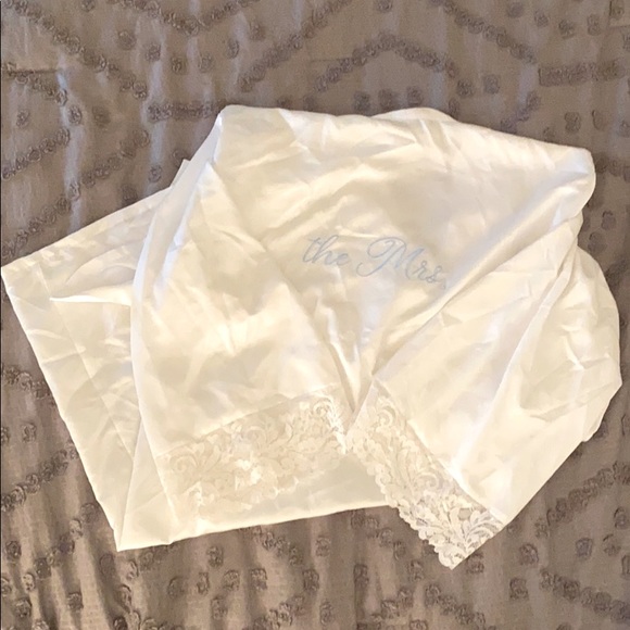 The Mrs robe that is white with lace at the end of the sleeves. Tags are no longer on. Only worn once.