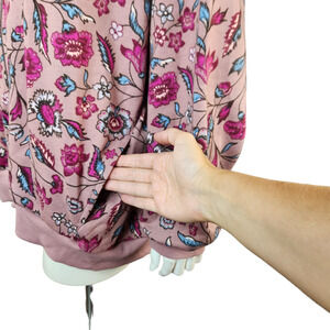 The Muses Lounge French Terry Zip-Front Full Zip Jacket Mauve Floral X-Large