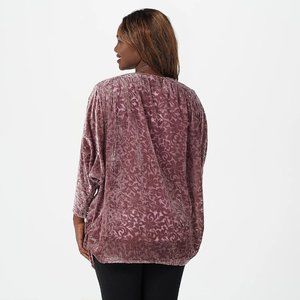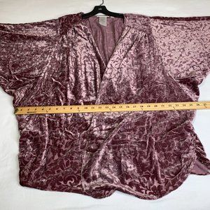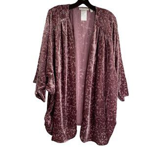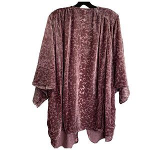The Muses Lounge Velvet Burnout Dolman Ruched Cardigan Dusty Mauve NEW