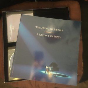 This Music of Disney, A Legacy in Song is a classic collection of all the iconic songs that we grew up with. It includes three CDs and a collectible book. This item is in very good condition except for the box that shows some wear. All CDs except for the third one have miner scratches. The third CD has several scratches but it still plays.