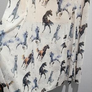 The Mustang Maxi skirt. A Light Sheer mesh overlay with a galloping horse pattern. Lined with soft nude fabric with a super stretchy waist band. See pictures for measurements