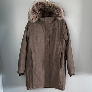 the north face nf parka coat jacket outerwear warm cold weather wear gore-tex waterproof windproof arctic Antarctic subzero removable faux fur hood gray grey charcoal casual classy pretty cute midi length long insulated puffer down feather trendy