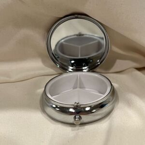 Gorgeous travel size Nativity Scene pill case with 3 compartments, use for medicine, vitamins. Anti-slip backing. Pocket or purse use, keep it in the car. Also has a mirror on inner lid. Made with durable metal outer shell that protects from scratches and crushed medicine keeps meds and supplements safe from damaging moisture and oxidation. Great little gifts for hostesses, teachers, stockings, etc. I ship fast usually within a business day!