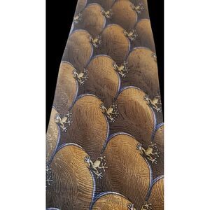 The Nature Conservancy Gold & Brown Tone Maki Frog Men's Tie 100% Silk 3.75" W