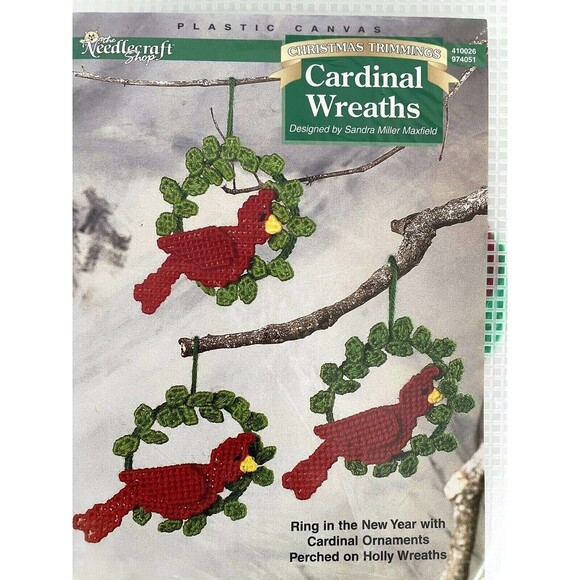 The Needlecraft Shop Christmas Cardinal Wreaths Ornaments Plastic Canvas Kit NEW