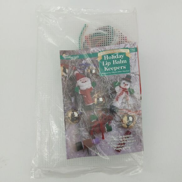 The Needlecraft Shop Christmas Trimmings Holiday Lip Balm Keepers Snowman Santa Canvas