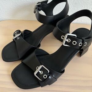 The Neeka Black Leather Women's Heeled Sandals, 6